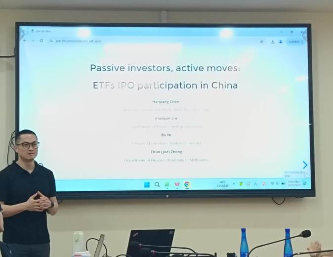 9月22日,金融科技系Seminar第22期在沙河校区学院楼3号楼127会议室举行。此次讲座邀请到墨尔本大学金融系钟卓副教授,分享题为“Passive investors, active moves: ETFs lPO participation in China”的精彩研究报告。讲座由金融学院金融科技系主任王忏副教授主持。