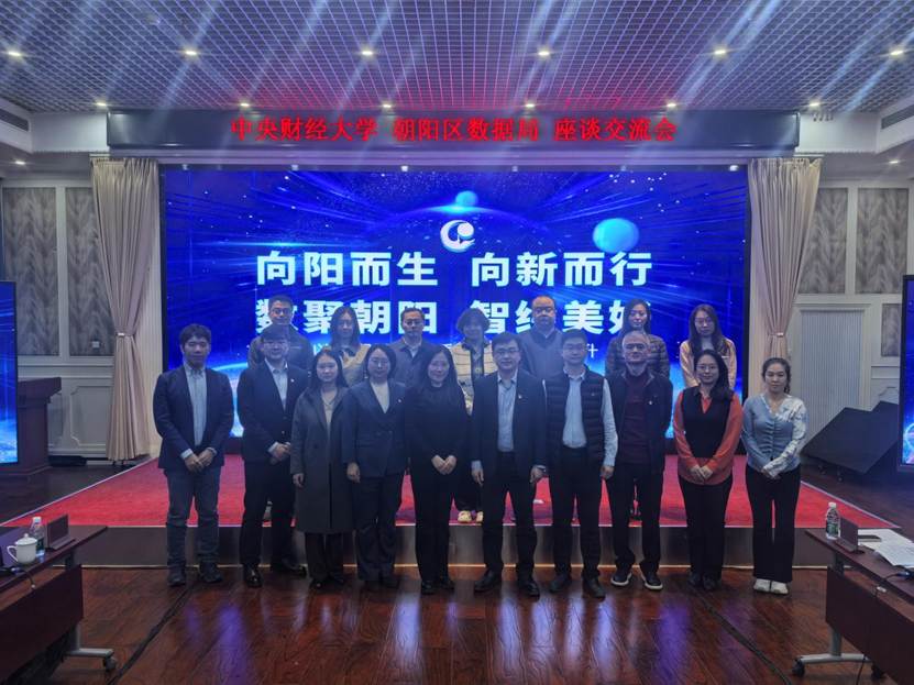 为深入学习贯彻党的二十届四中全会关于数字经济发展的重要论述,积极探索校地协同育人新模式,3月19日下午,中央财经大学金融学院党委书记徐淼带队赴朝阳区数据局,开展以“党建引领聚合力,数智融合促发展”为主题的学习调研。学院党委副书记陈妮娜,副院长郭豫媚、杜涣程,金融科技系系主任、党支部书记王忏,金融人工智能北京市重点实验室副主任王靖一,及金融科技系助理教授田诗文、张翔宇共同前往。朝阳区数据局党组书记、局长李容珍,党组成员、副局长潘帅,四级调研员刘悦镔及相关科室负责人参加调研。