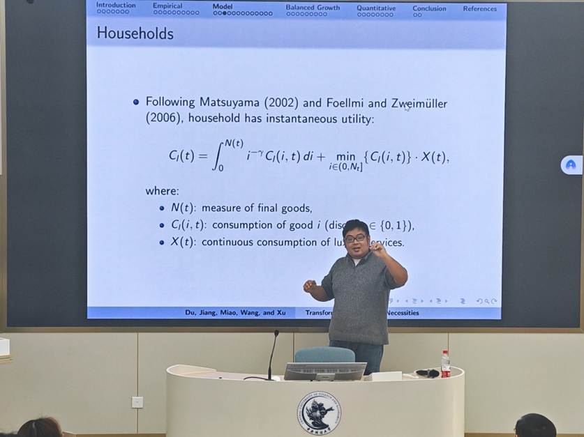 2026年3月19日上午,金融学院主办的金融学系Seminar第21期在沙河校区学院楼3号楼222报告厅顺利举办。北京大学新结构经济学研究院副院长、长聘副教授江深哲以“Transforming Luxuries into Necessities: How Inequality Affects Growth?”为题展开了精彩报告。讲座由金融学院副教授王忏主持。